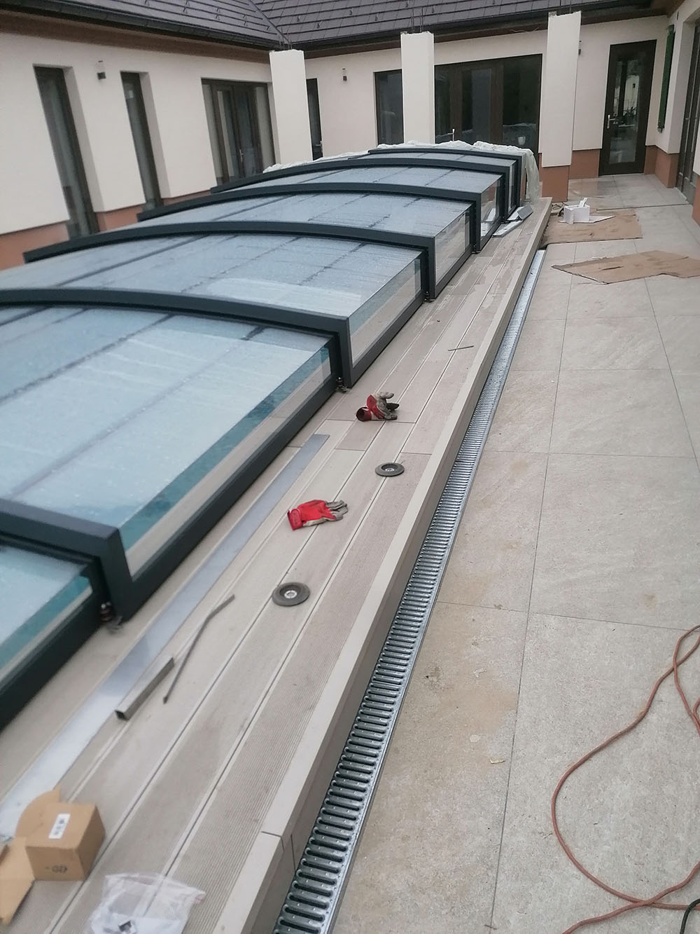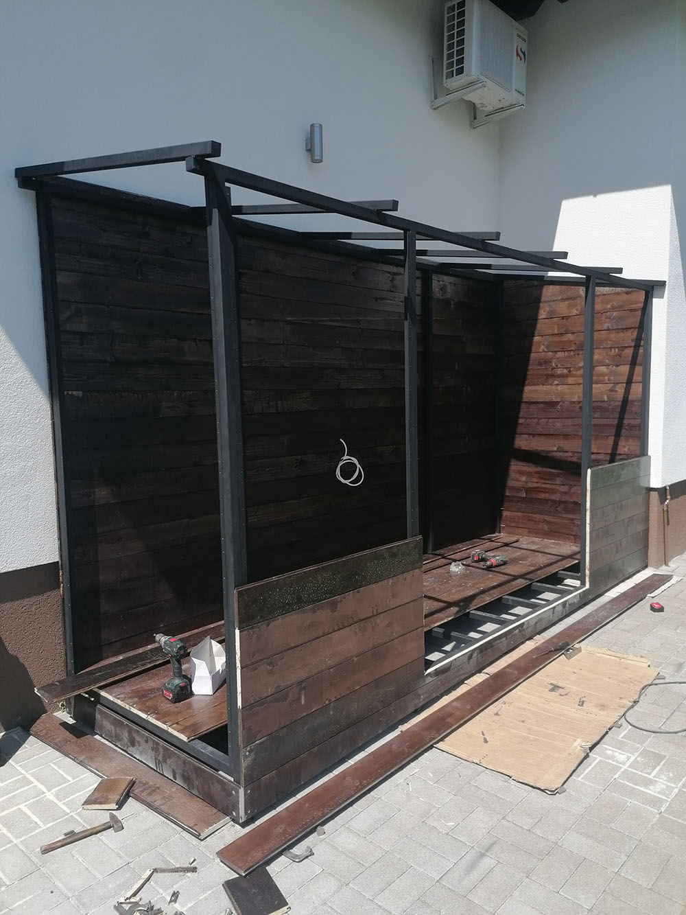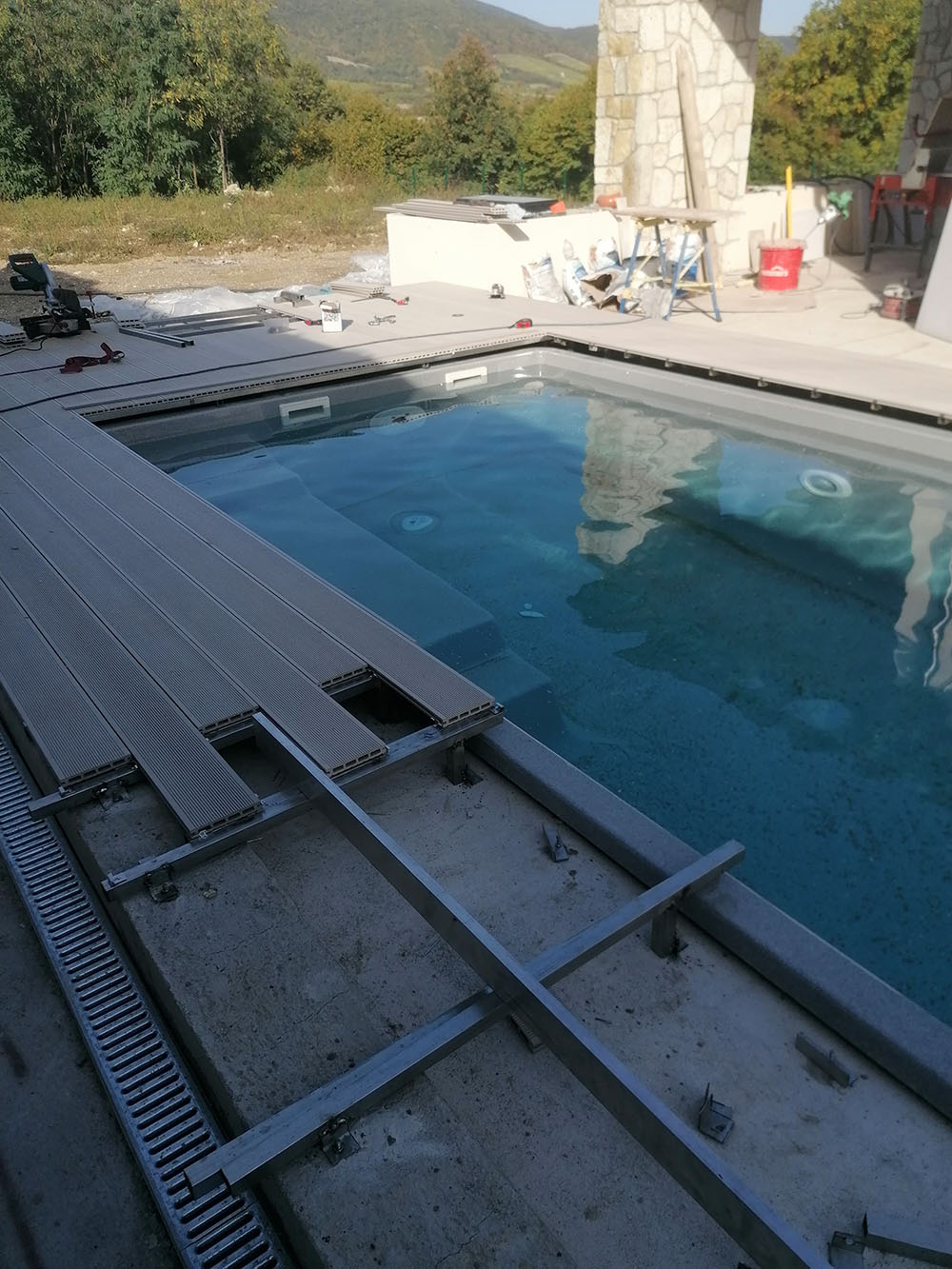 A medence körüli burkolatok esetében kiemelten fontos a stabil alap. A rozsdamentes acél vázszerkezet biztosítja a tartósságot, míg a WPC burkolat esztétikus és időjárásálló megoldást nyújt.